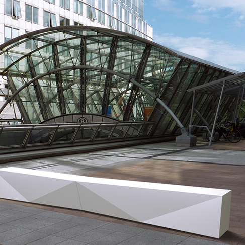 This iron made bench is strongly inspired by the art of Origami: the foldings Impressed in a raw steel plate give volume and stiffness to a simple sheet and generate a faceted rigid and dynamic box on which people can seat.