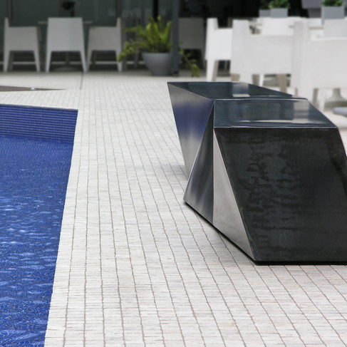 La panca è pensata come una sequenza virtualmente infinita di moduli speculari lunghi due metri (in queste immagini ne figurano solo due) ricavati da una lamiera di ferro naturale spessa 1mm, con patina di calamina, finita a cera. Ne esiste, però, anche una versione realizzata in Corian©. Una seduta dal forte carattere plastico, ideale per esterni o per ampi spazi interni, come musei, luoghi di culto o halls di alberghi.